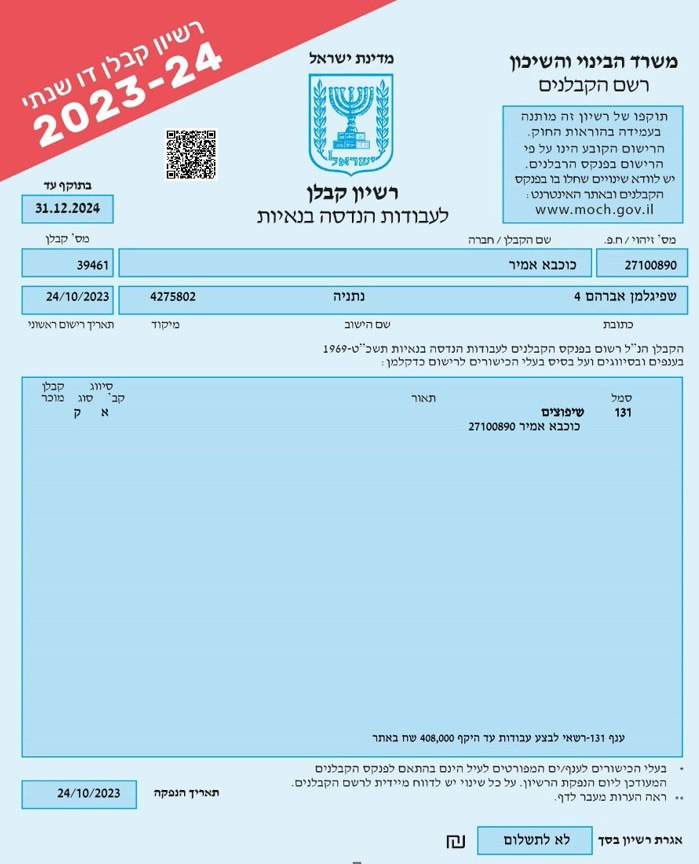ת: העסקה של חברה/קבלן שאינו רשום היא עבירה פלילית אשר דינה קנס ואף במקרים קיצוניים מאסר על תנאי או מאסר בפועל בהתאם לנסיבות המקרה. בנוסף, פוליסת הביטוח לטובת הפרויקט לא תחול במקרה של אירוע ביטוחי.